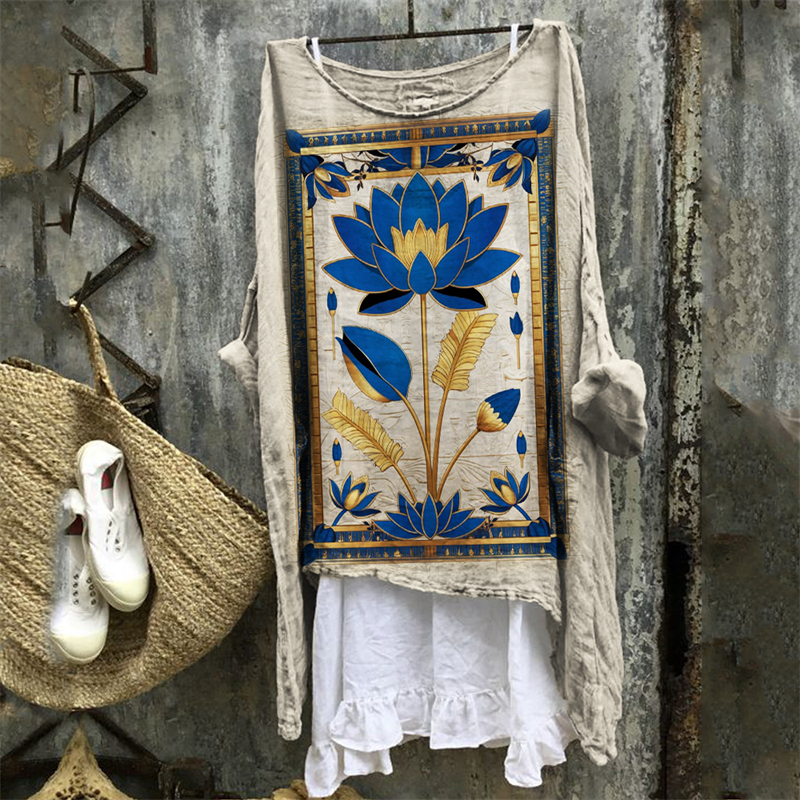 Ancient Egyptian Lotus Golden Art Linen Tunic