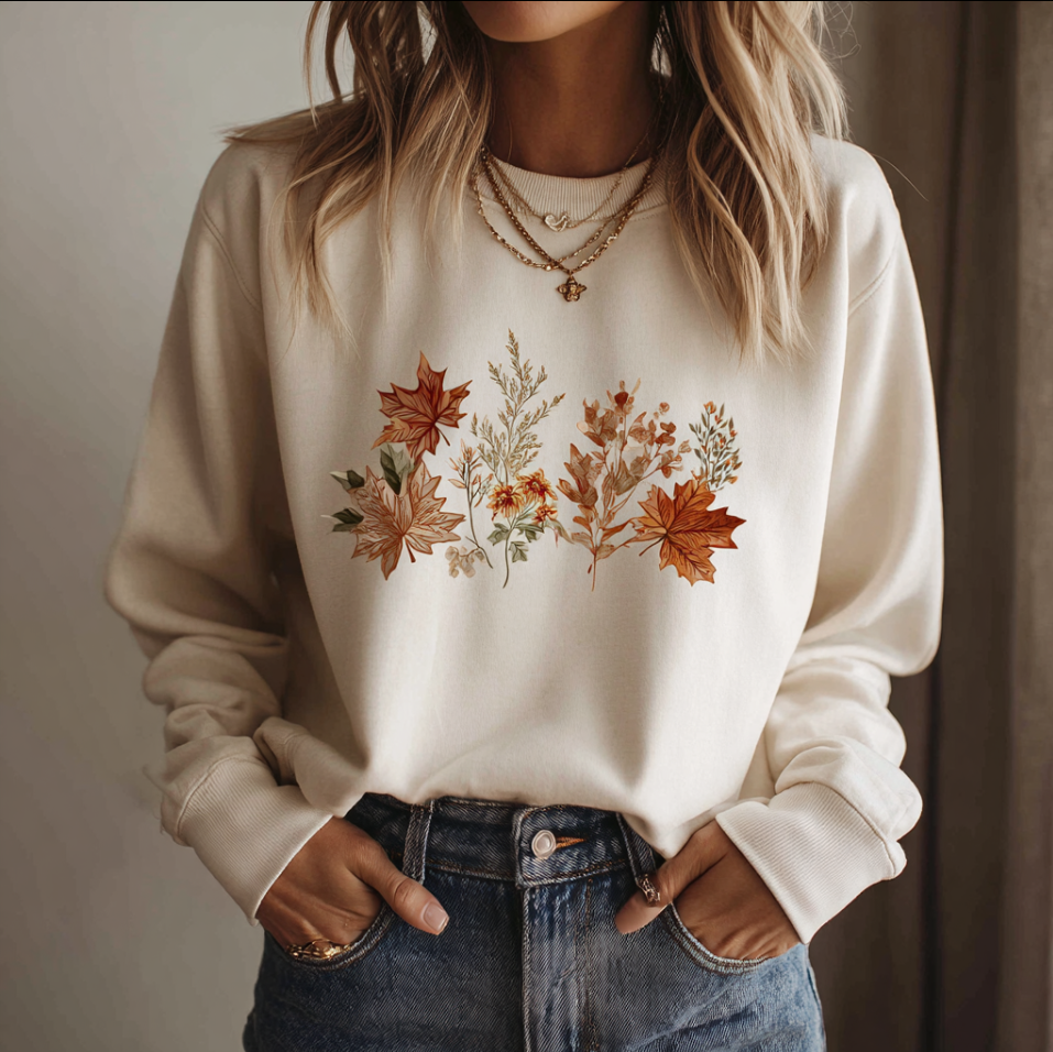 Bohemian Style Maple Leaf Pattern Printed Long-sleeve Sweatshirt