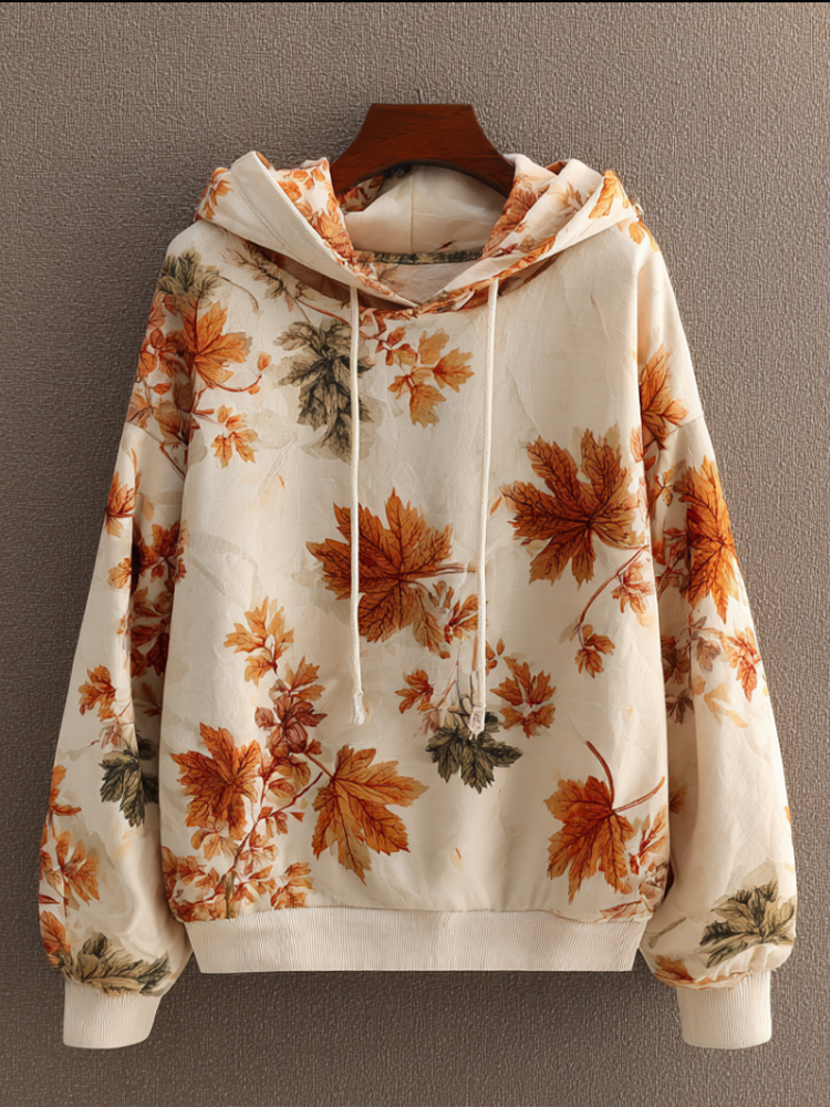 Bohemian Style Plant And Flower Pattern Women's Hooded Sweatshirt