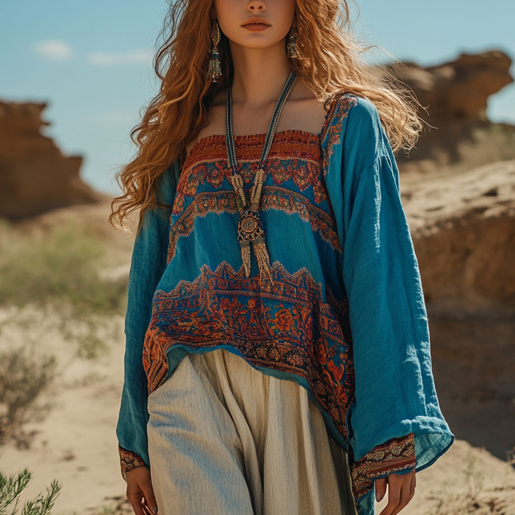 Desert Style Holiday Bohemian Vintage Linen Casual Top