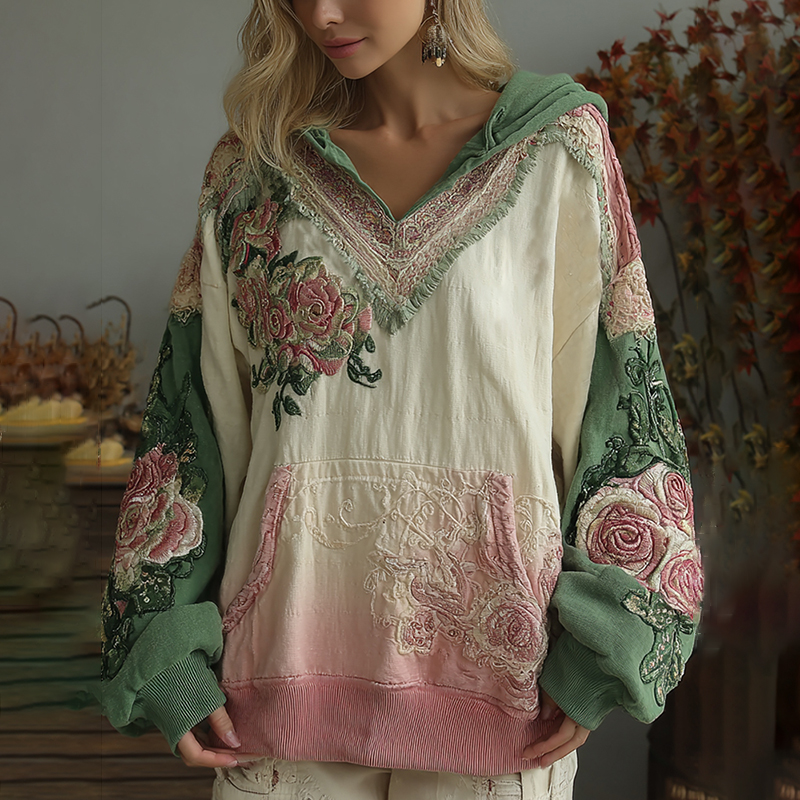 Love & Health Collection Rose And Floral Patchwork Art Women's Cozy Warm Hoodie