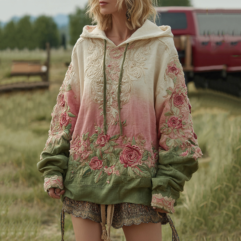 Love & Health Collection Vintage Rose And Floral Art Linen Long Sleeve Hoodie