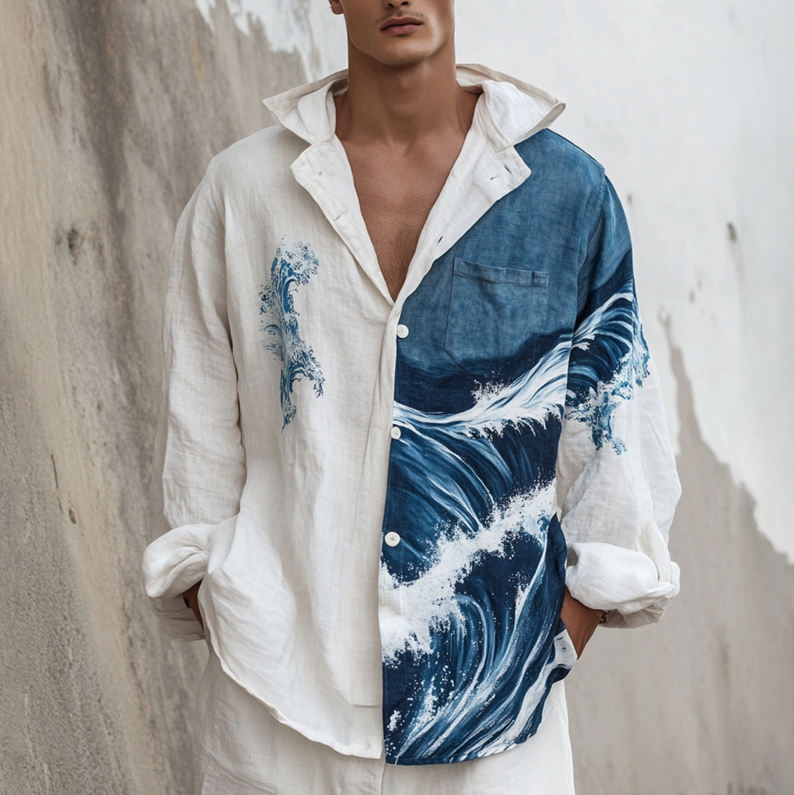Men's Casual Vintage Cotton And Linen Long Sleeve Shirt