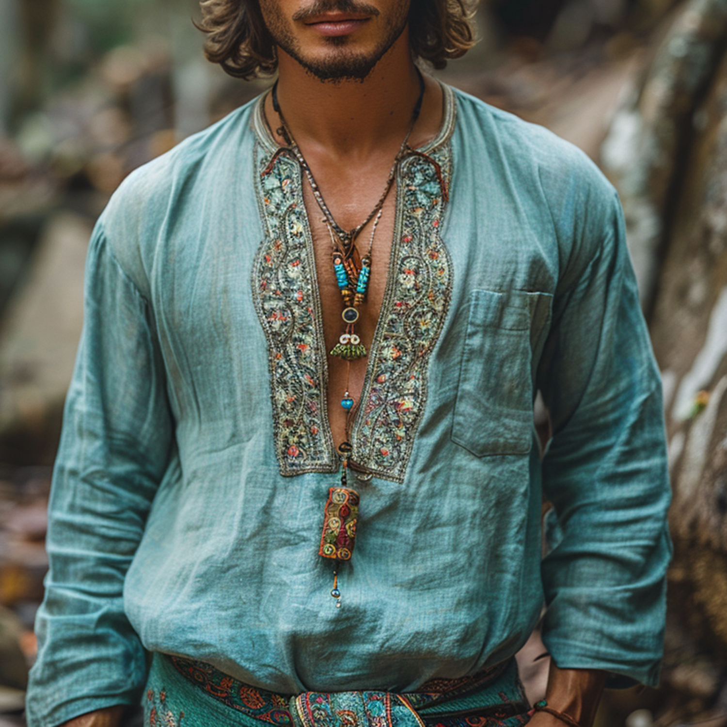 Resort Casual Ethnic Style Printed Long-sleeved Shirt