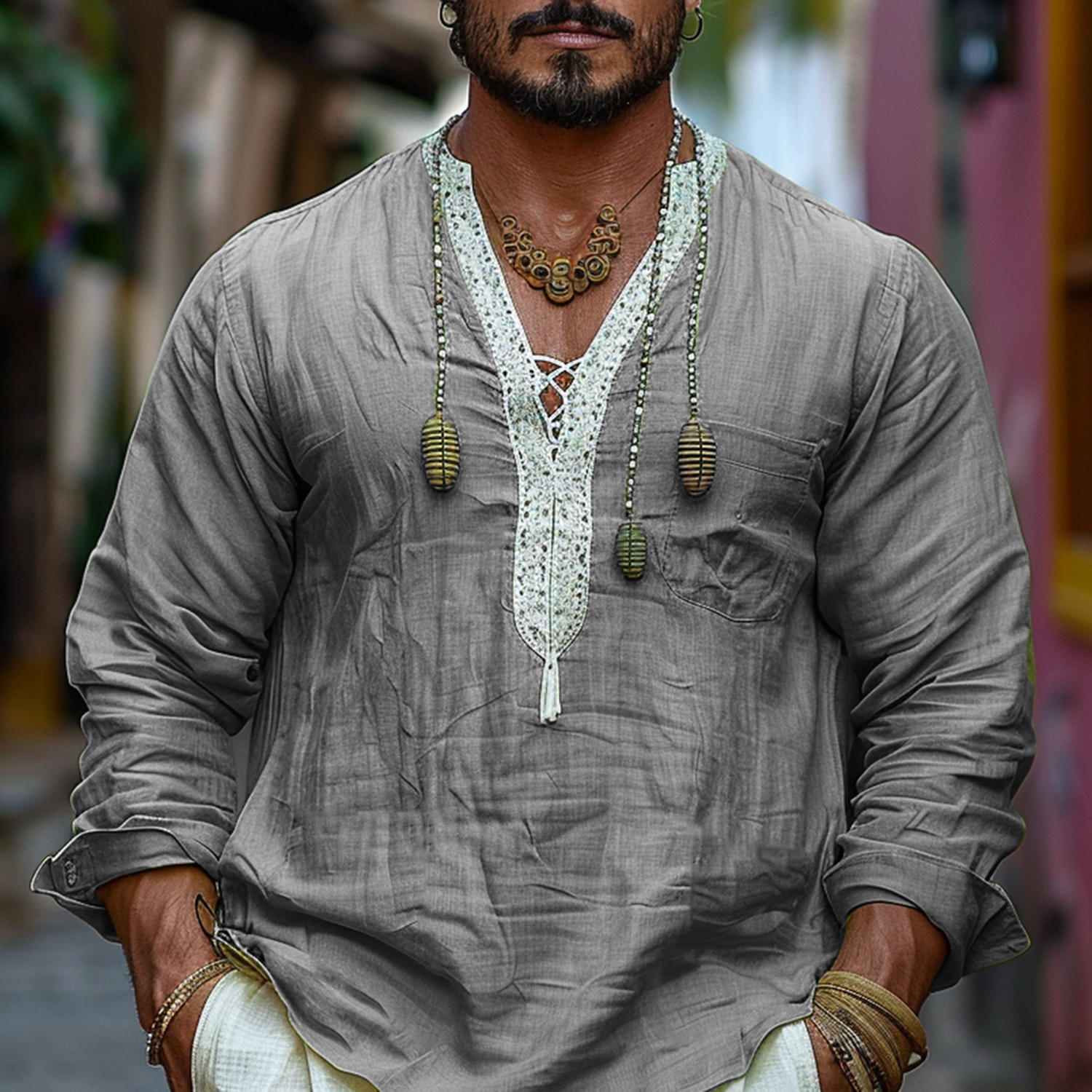 Resort Lace Design Long Sleeve Shirt