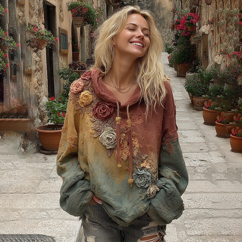 The Sunset Collection Women's Classic Bohemian Floral And Rose Gradient Cozy Warm Hoodie