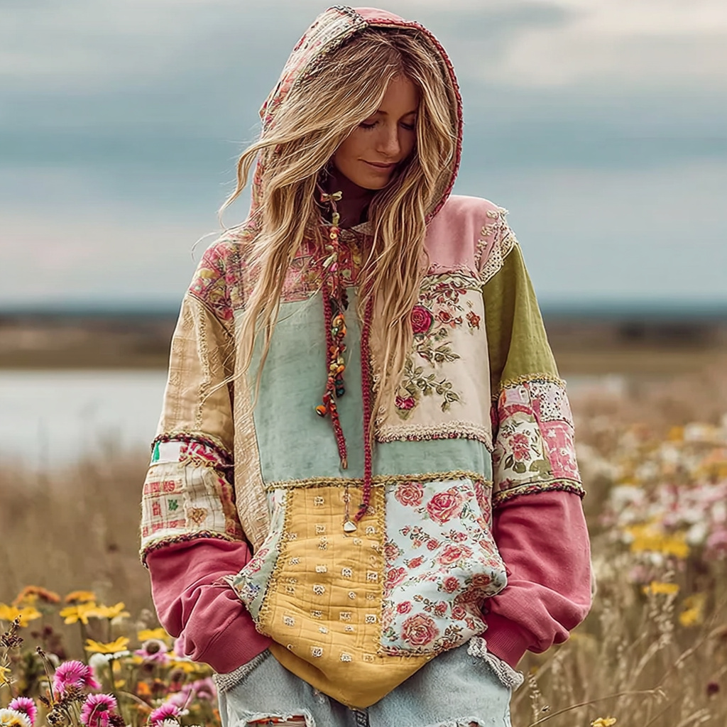 Vintage Floral Patchwork Art Comfortable Warm Hoodie