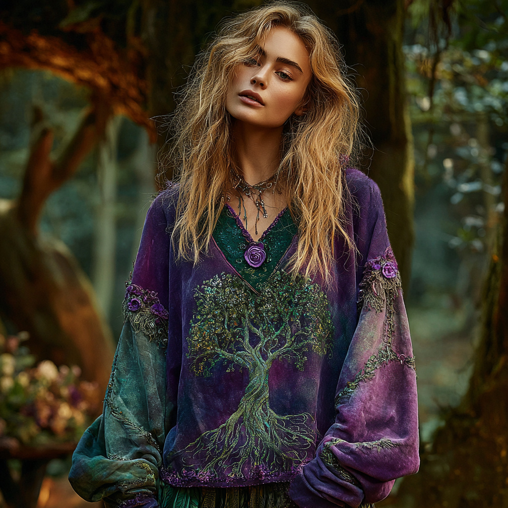 Vintage Tree Of Life Gradient Art Women's Cozy Warm Sweatshirt
