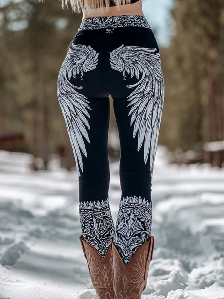 Vintage Viking Style White Winged Celtic Knot Black Knit Leggings