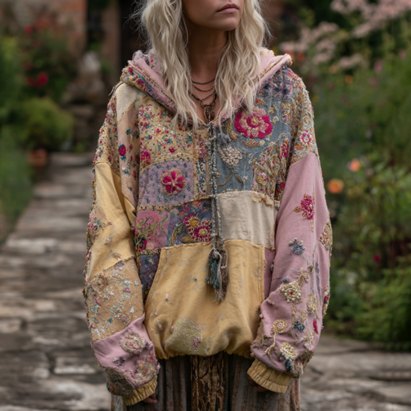 Women's Bohemian Floral Patchwork Cozy Warm Hoodie
