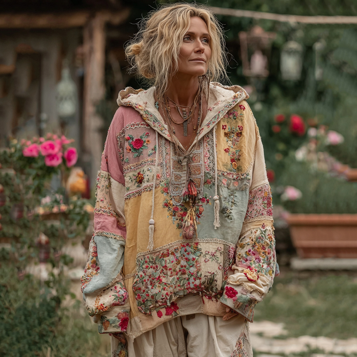 Women's Bohemian Floral Patchwork Cozy Warm Hoodie