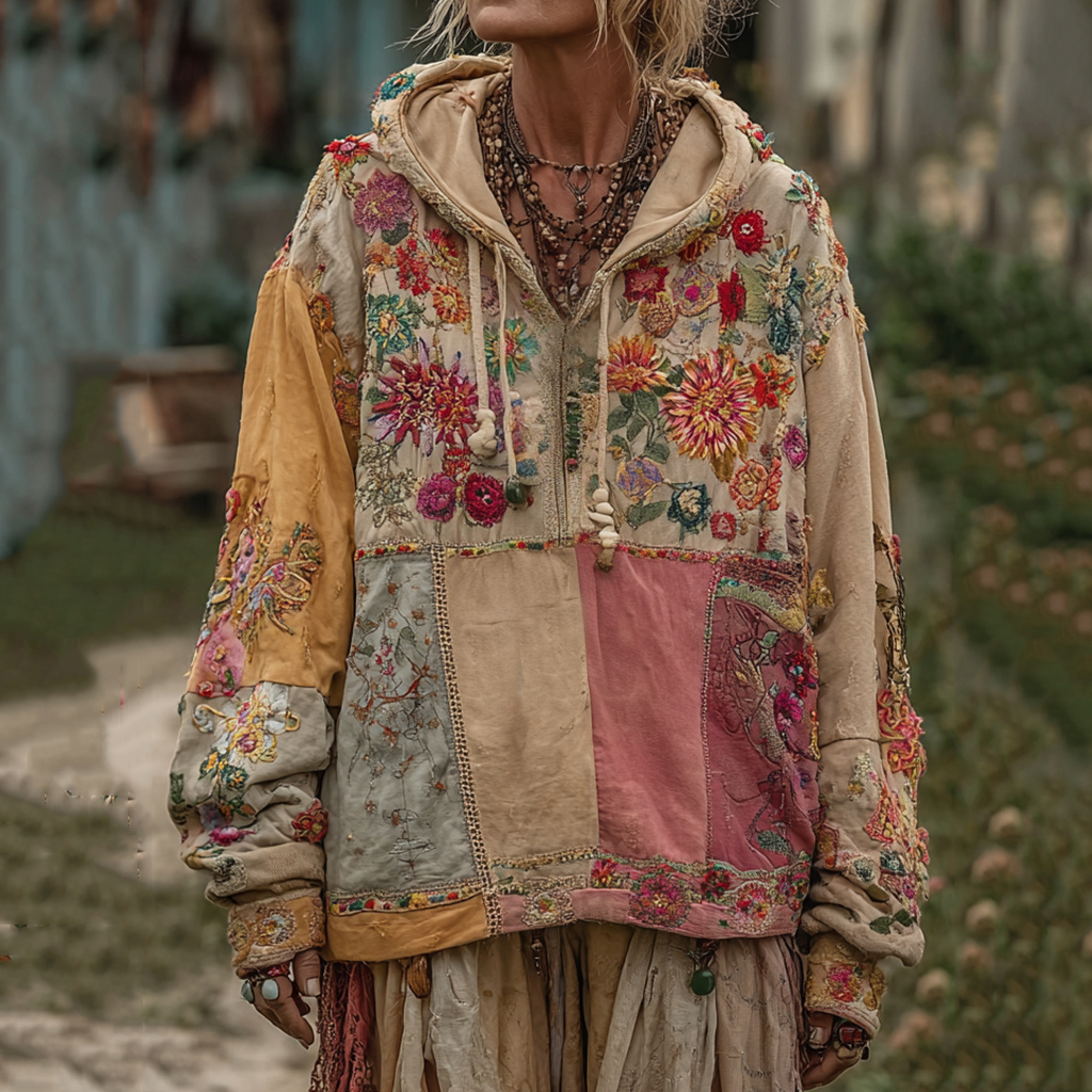 Women's Bohemian Floral Patchwork Cozy Warm Hoodie