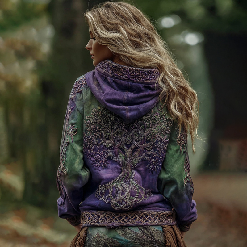 Women's Classic Viking Tree Of Life And Celtic Knot Art Gradient Comfort Hoodie