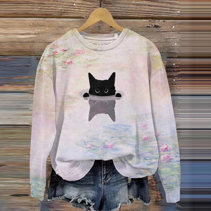 Women's Funny Black Cat Abstract Oil Painting Art Painting Sweatshirt