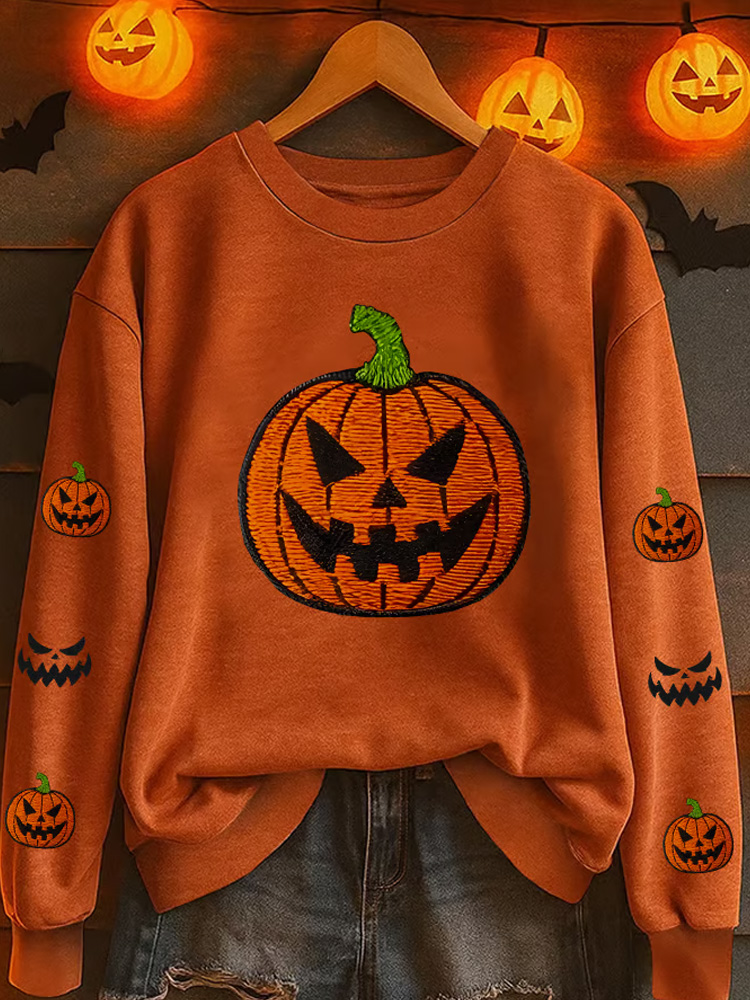 Women's Halloween Pumpkin Printed Hooded Sweatshirt