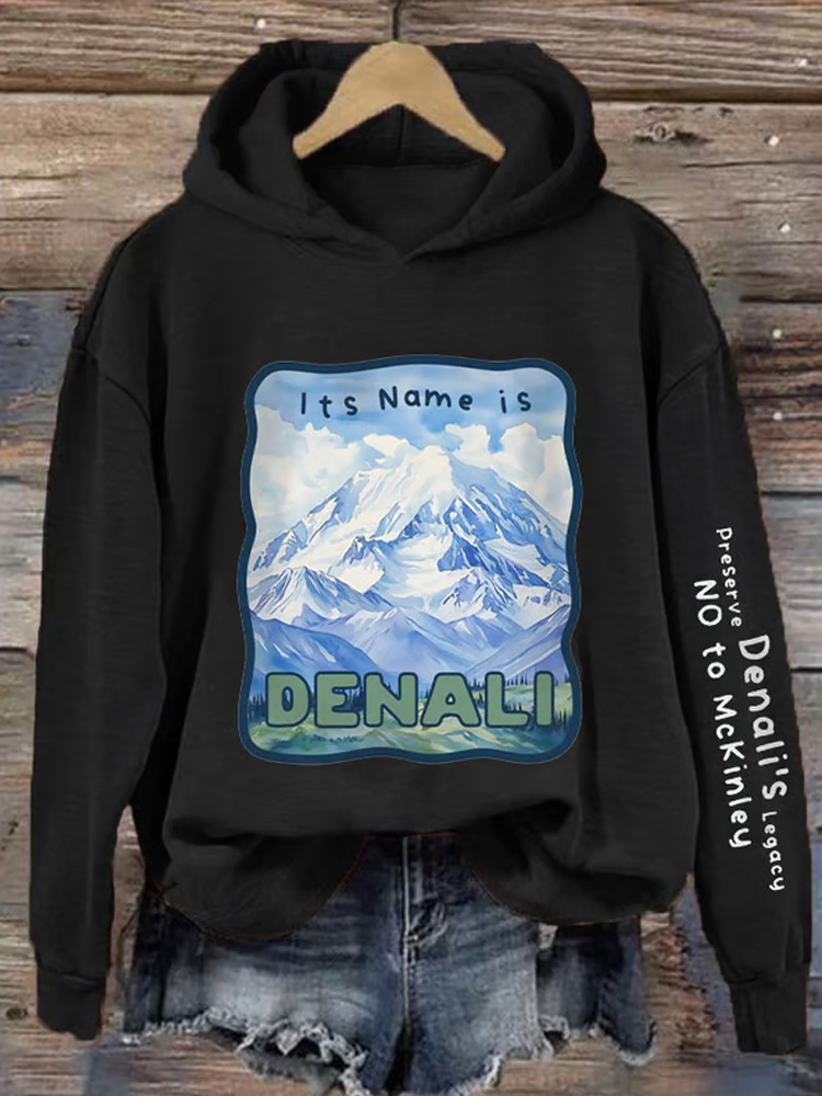 Women's Its Name Is Denali Forever Denali Alaska Print Hoodie