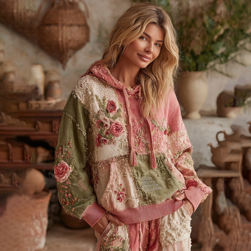 Women's Rose Embroidery Gradient Art Hooded Sweatshirt