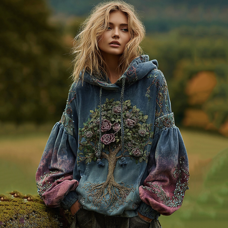Women's Tree Of Life Gradient Art Comfort Warm Hoodie