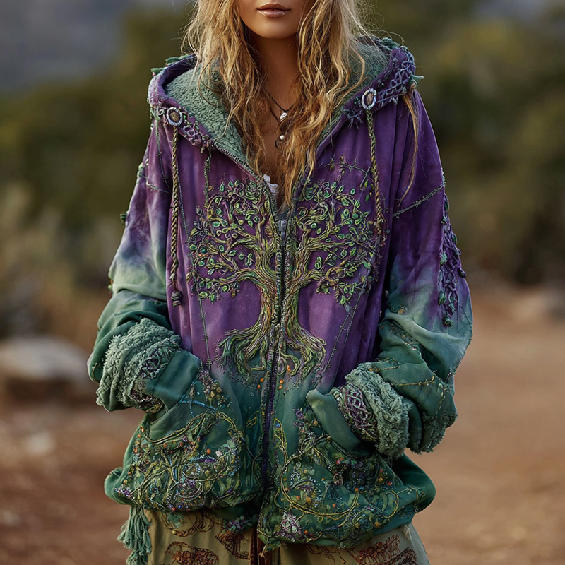 Women's Viking Celtic Knot Tree Of Life Comfort Warm Zip Hoodie