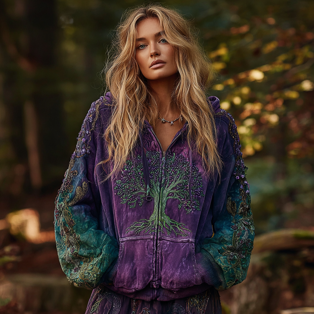 Women's Viking Tree Of Life Cozy Warm Zip-up Cardigan