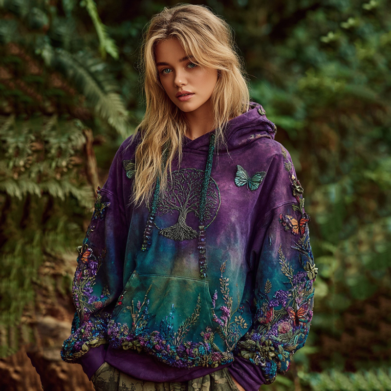 Women's Viking Tree Of Life Gradient Art Casual Hoodie
