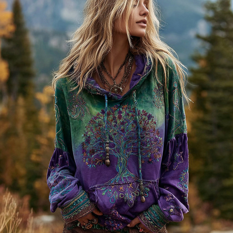 Women's Viking Tree Of Life Gradient Print Long Sleeve Casual Hoodie