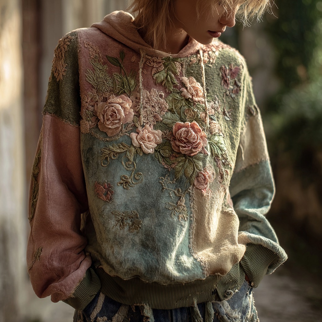 Women's Vintage Floral Art Patchwork Hoodie