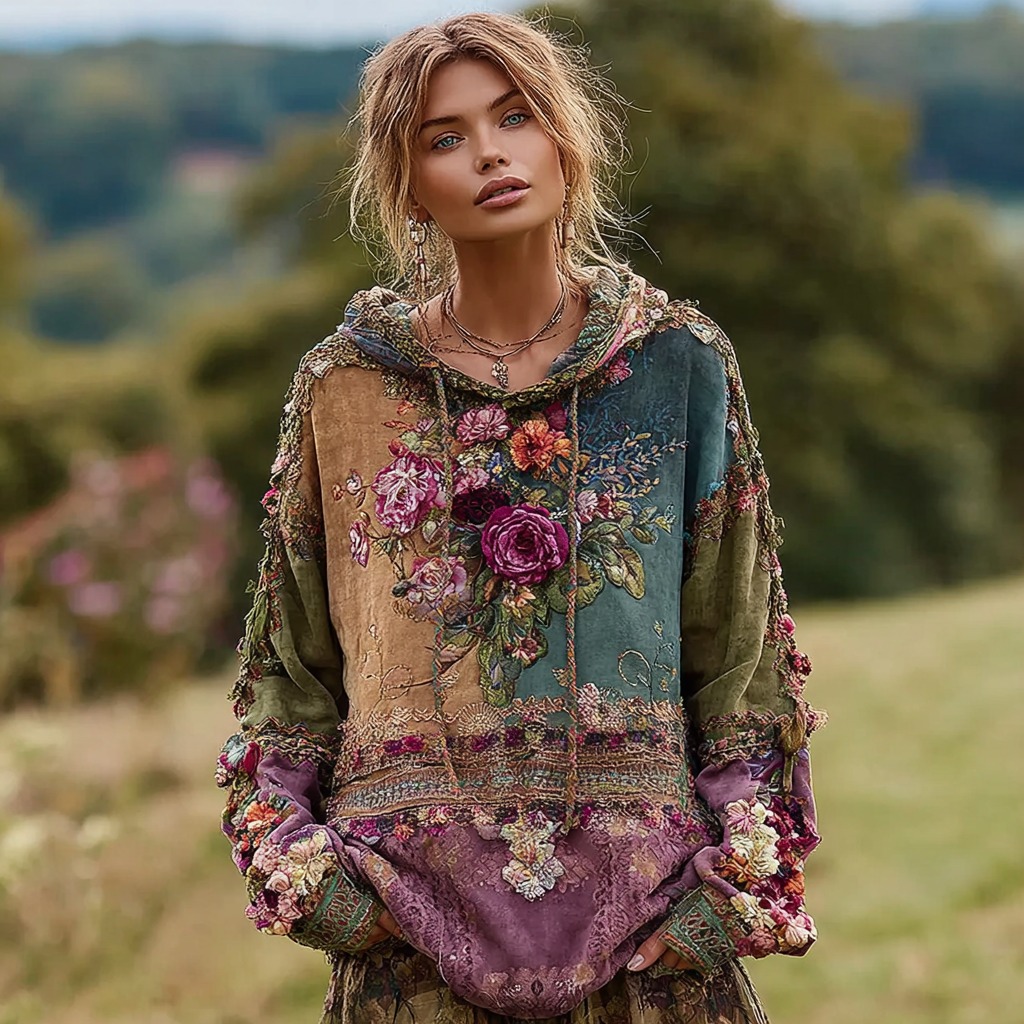 Women's Vintage Floral Patchwork Warm Hoodie