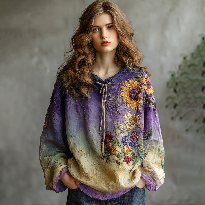 Women's Vintage Oil Painting Flower Art Print Hoodie