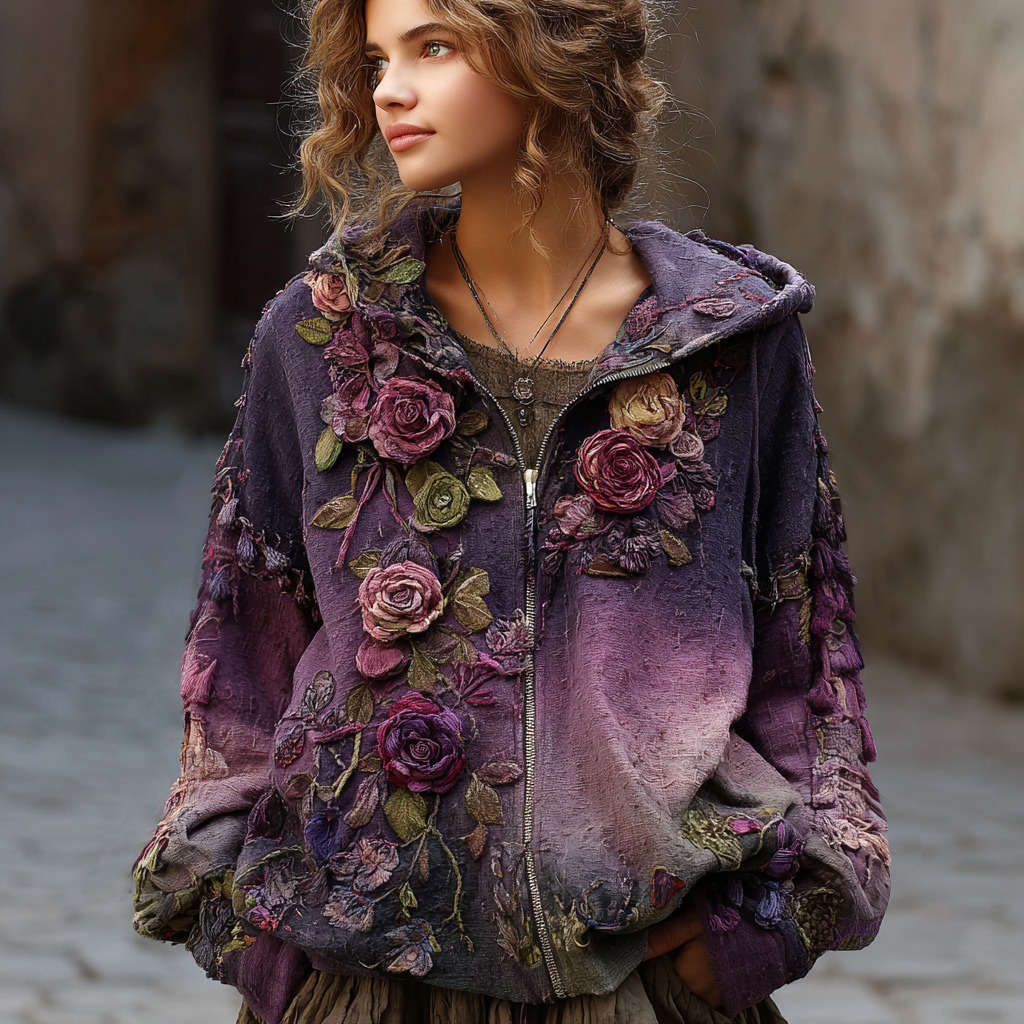 Women's Vintage Rose Floral Knitted Warm Zipper Cardigan
