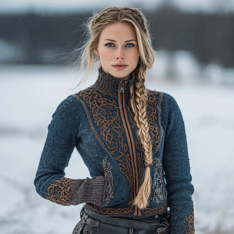 Women's Vintage Viking Celtic Knot Cable Knot Zipper Cardigan