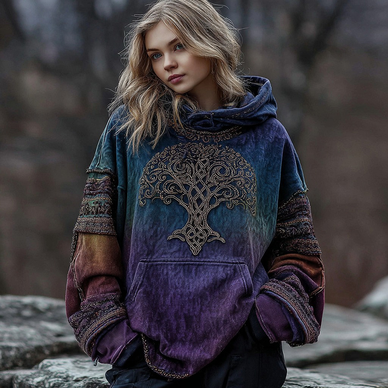 Women's Vintage Viking Celtic Knot Tree Of Life Graphic Warm Hoodie