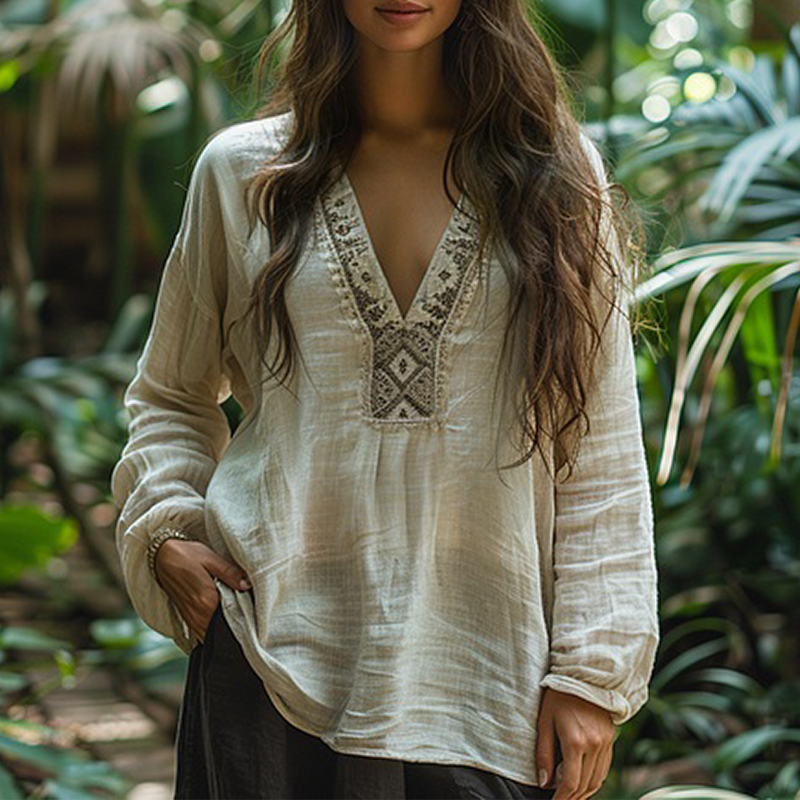 Women's Vintage Viking Linen Ancient Nordic-style Print Long Sleeve Tops Blouse