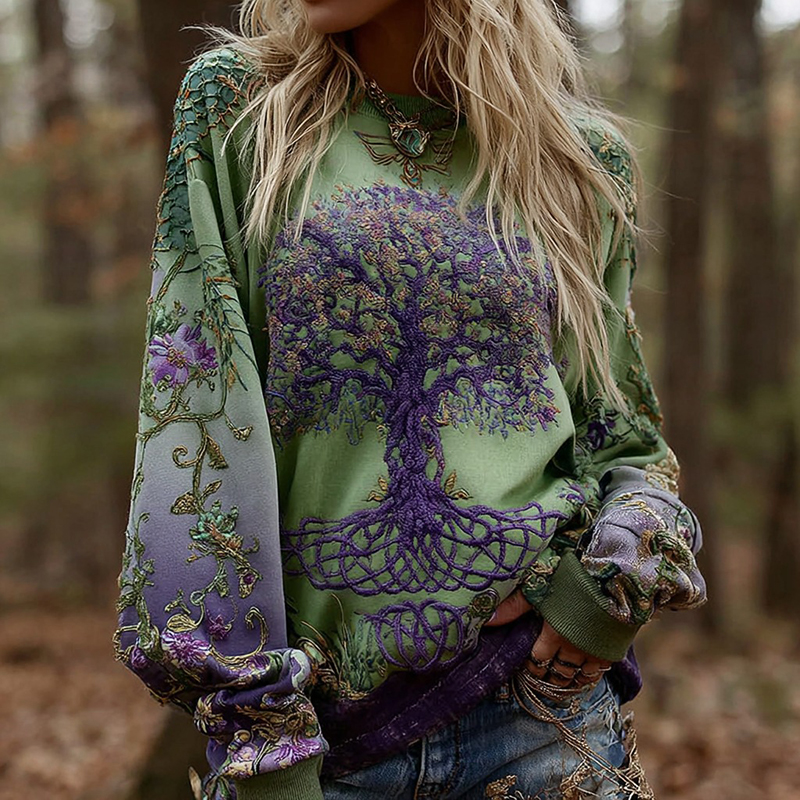 Women's Vintage Viking Tree Of Life Floral Pattern Warm Crew Neck Sweatshirt