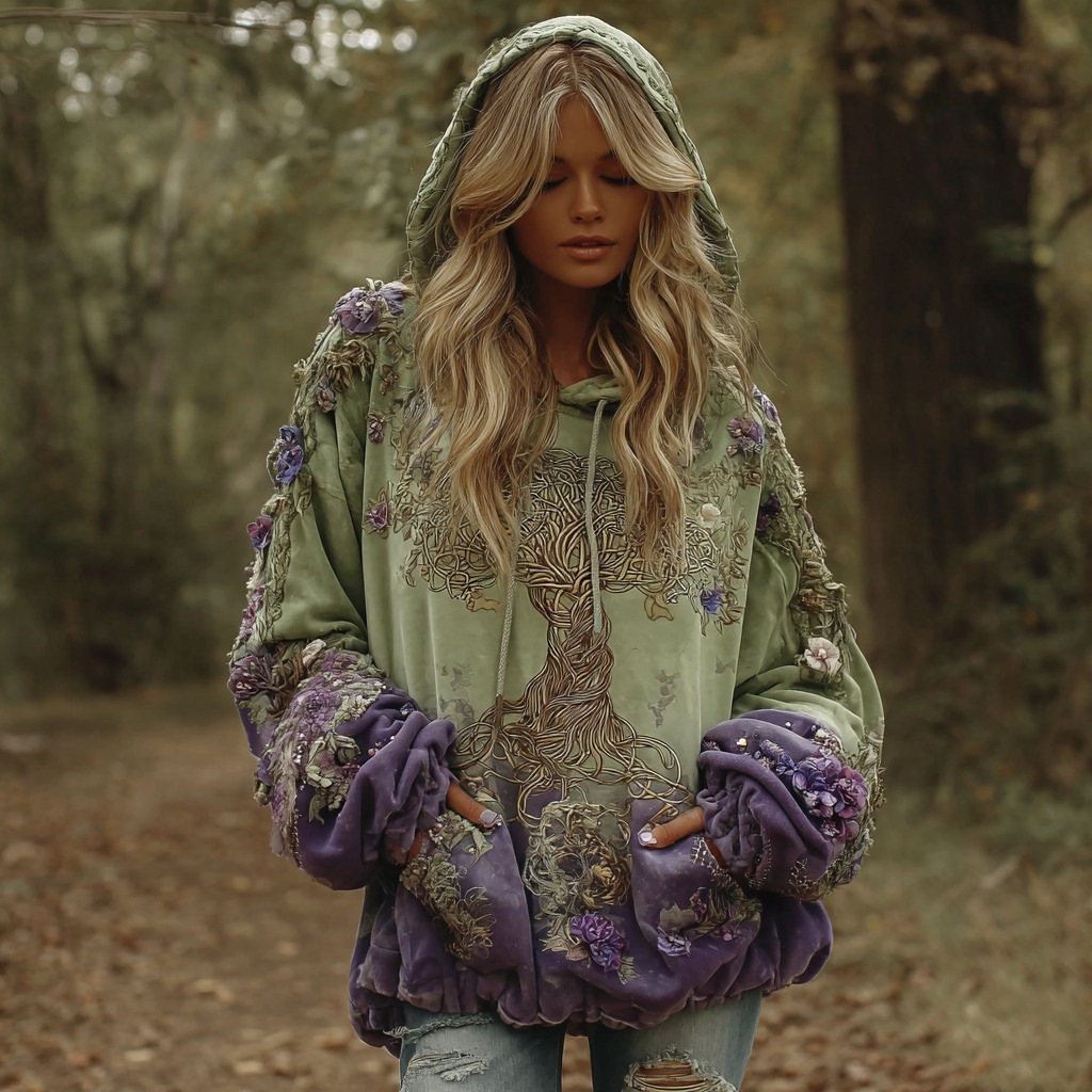 Women's Vintage Viking Tree Of Life Thermal Hoodie